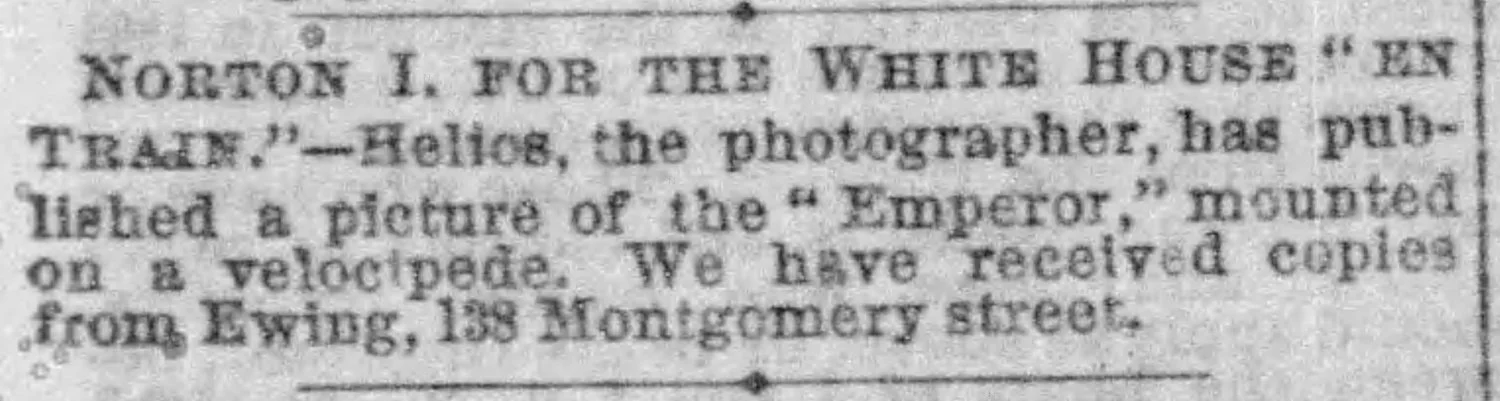 the Daily Alta’s item of 8 March 1869 about Muybridge’s photograph of Emperor Norton on a velocipede; and