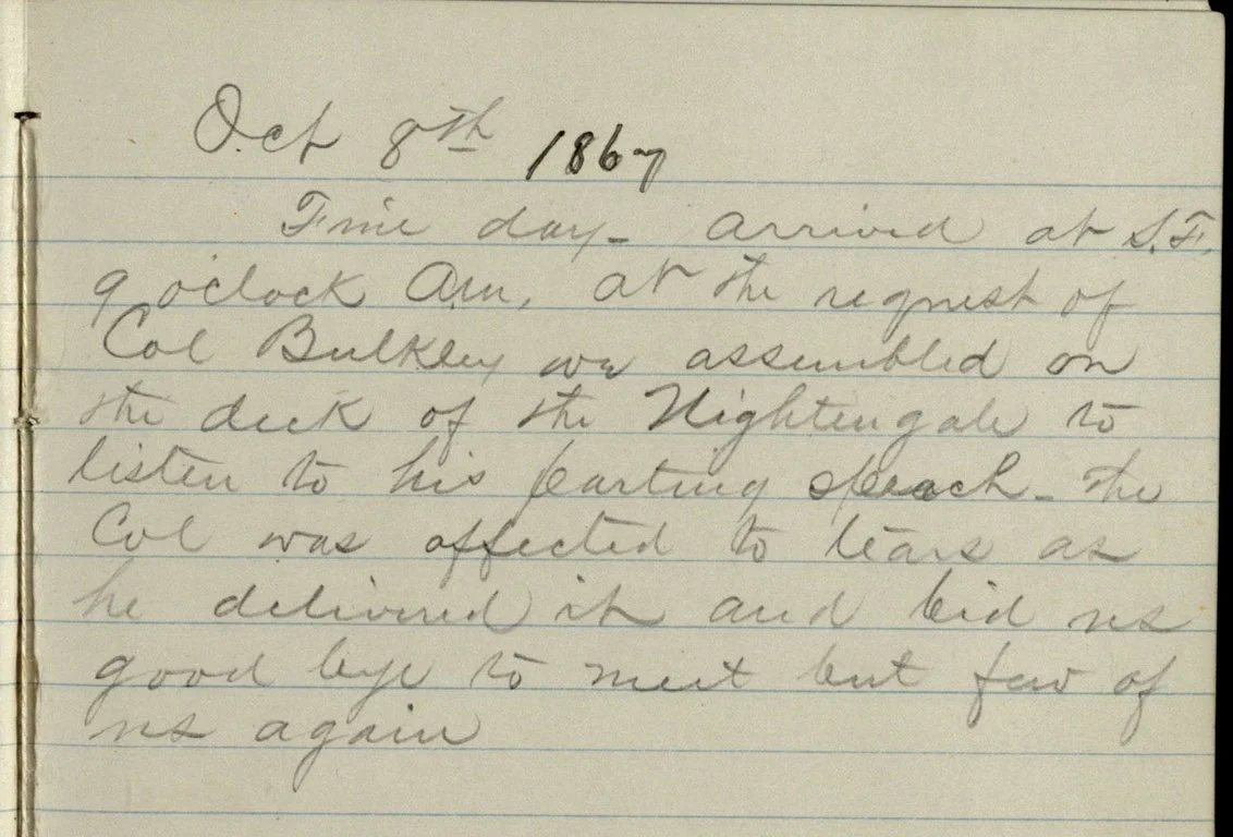 Diary entry of Daniel B. Libby about the clipper Nightingale, 8 October 1867. Source: Alaska State Library