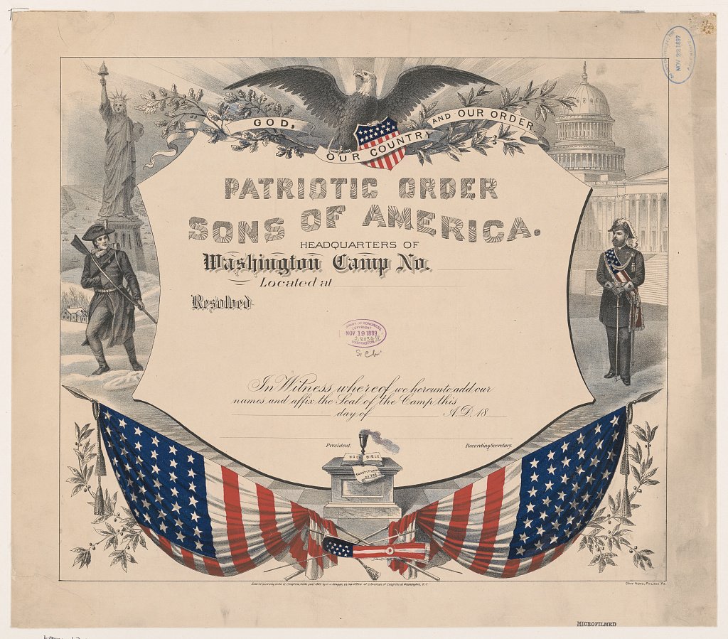 Membership certificate for the Patriotic Order Sons of America, 1891. Source: Barry Lawrence Ruderman Antique Maps